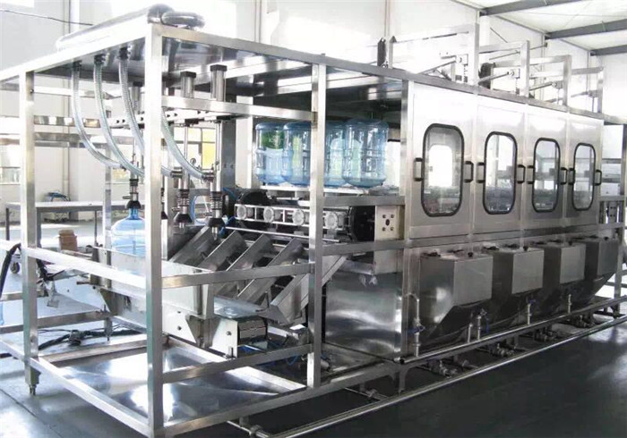 2、該設備適用5加侖瓶使用(也可適用3加侖瓶,但需提供樣瓶),該設備集洗瓶、灌裝、套蓋、壓蓋和成品送出為一體。洗瓶機采用多道洗滌液噴射和消毒液噴射,達到洗滌、消毒的目的,消毒液可以循環使用。封口機可以自動封口,輸送瓶蓋過程口配有衛淋裝置,以確保瓶蓋無菌清潔。